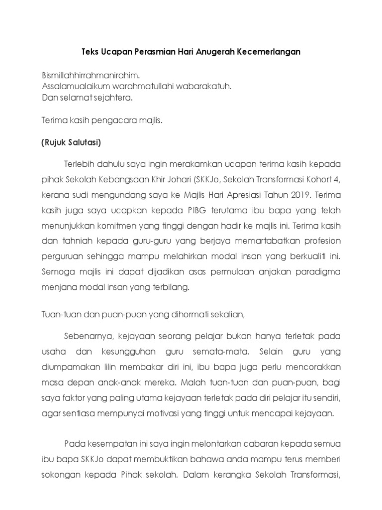Teks Ucapan Perasmian Hari Anugerah Kecemerlangan Pdf