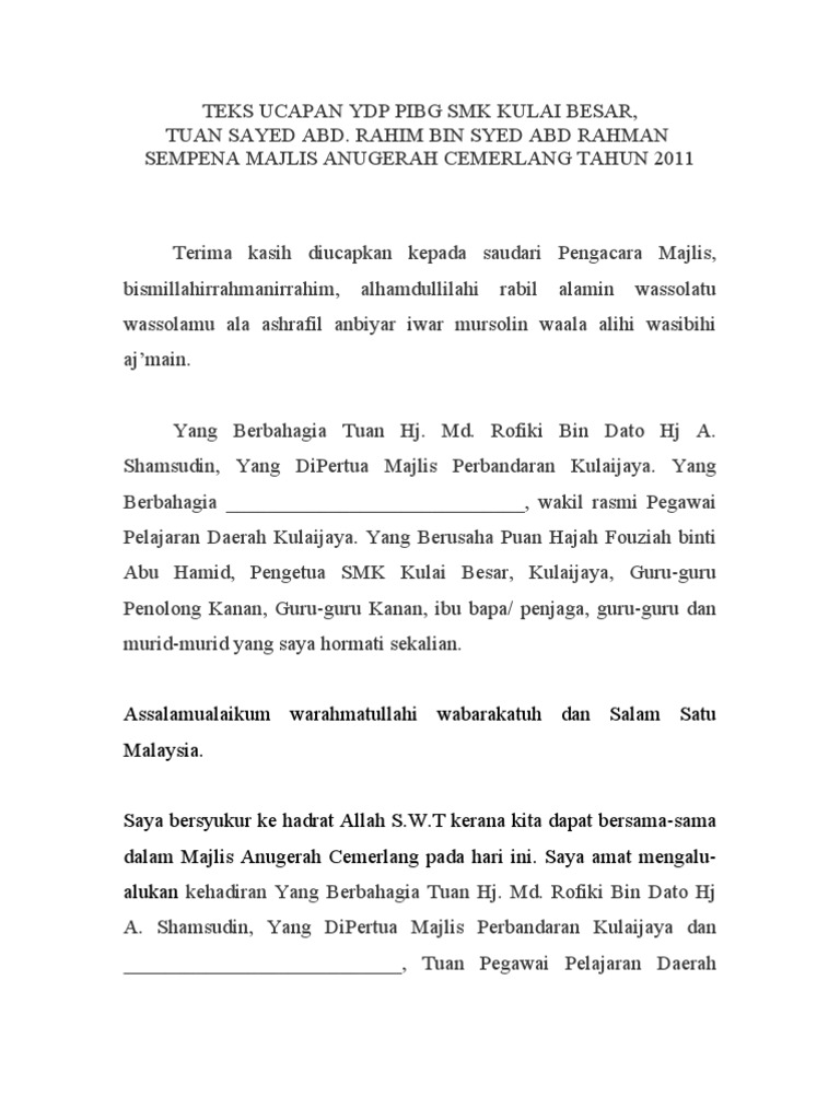 Teks Ucapan Anugerah Cemerlang Ydp Pibg Pdf